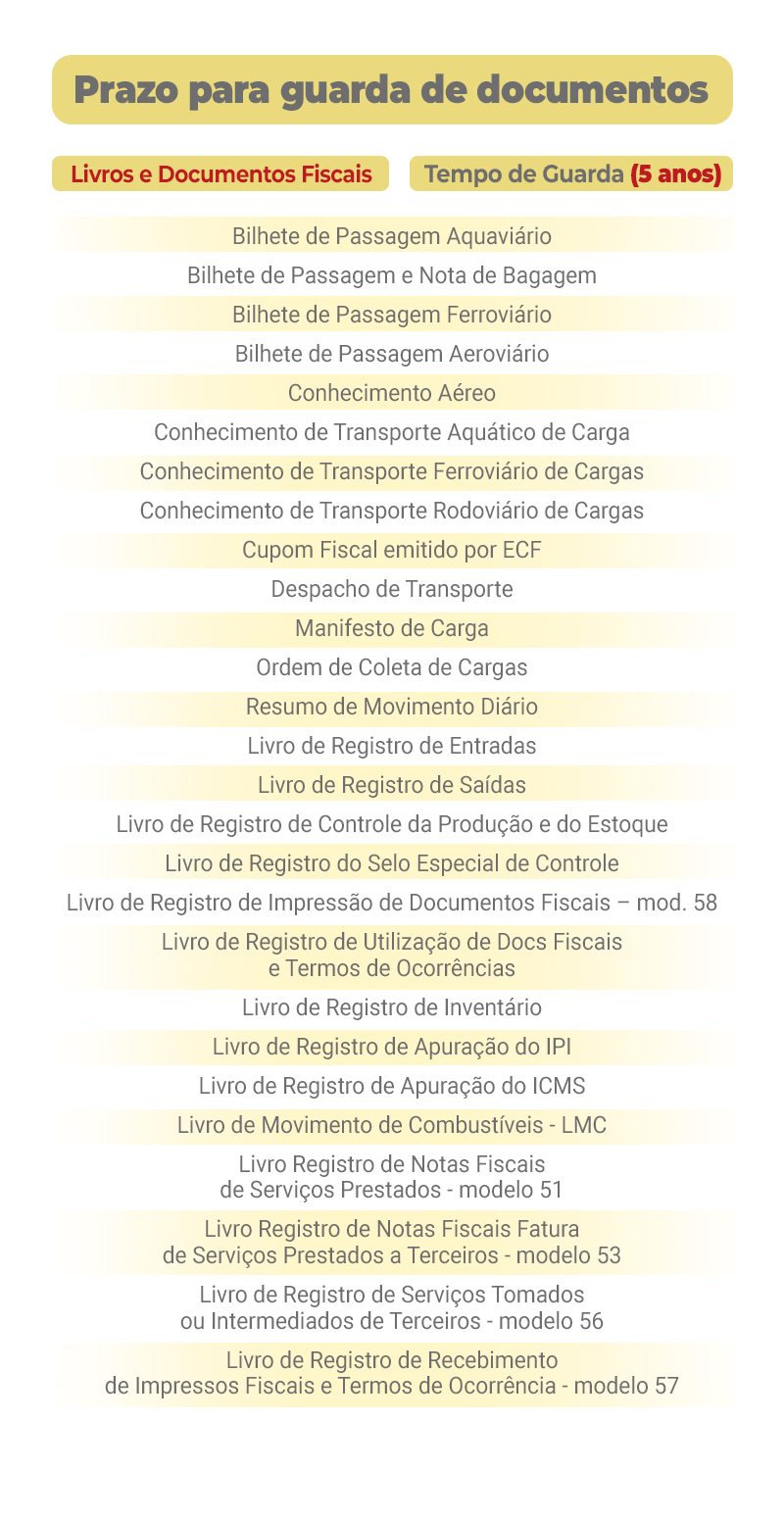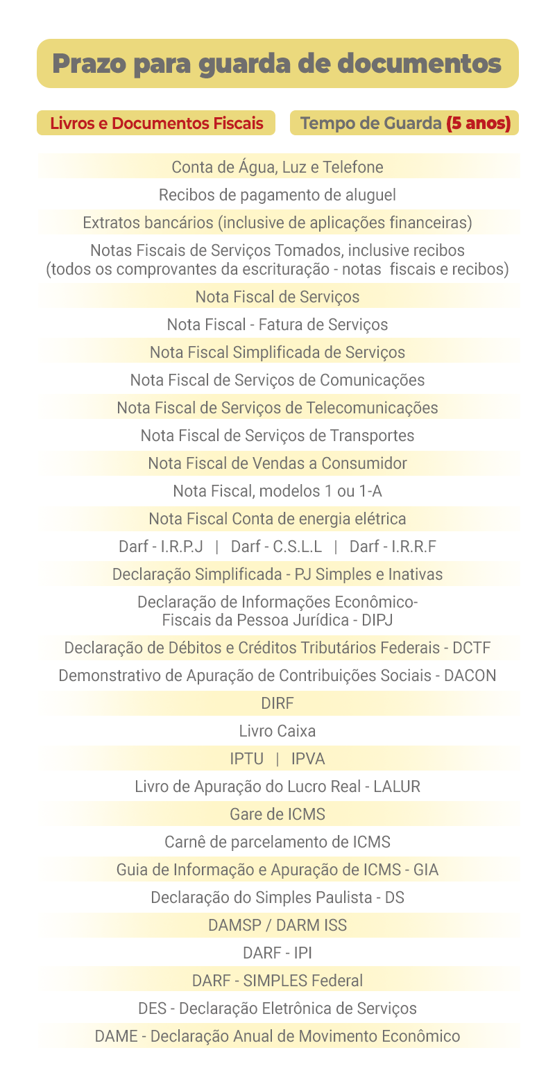A seguir, você terá acesso a uma tabela com os prazos necessários para manter seus documentos fiscais e liberar muito espaço em suas gavetas!